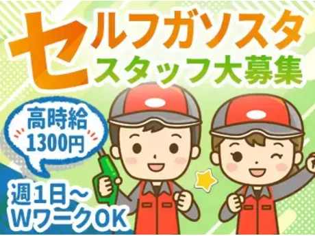セルフガソリンスタンドスタッフ(アルバイト・パート)/<履歴書不要>週2日~副業・扶養内OK!未経験歓迎!高時給1300円~!高校生OK!